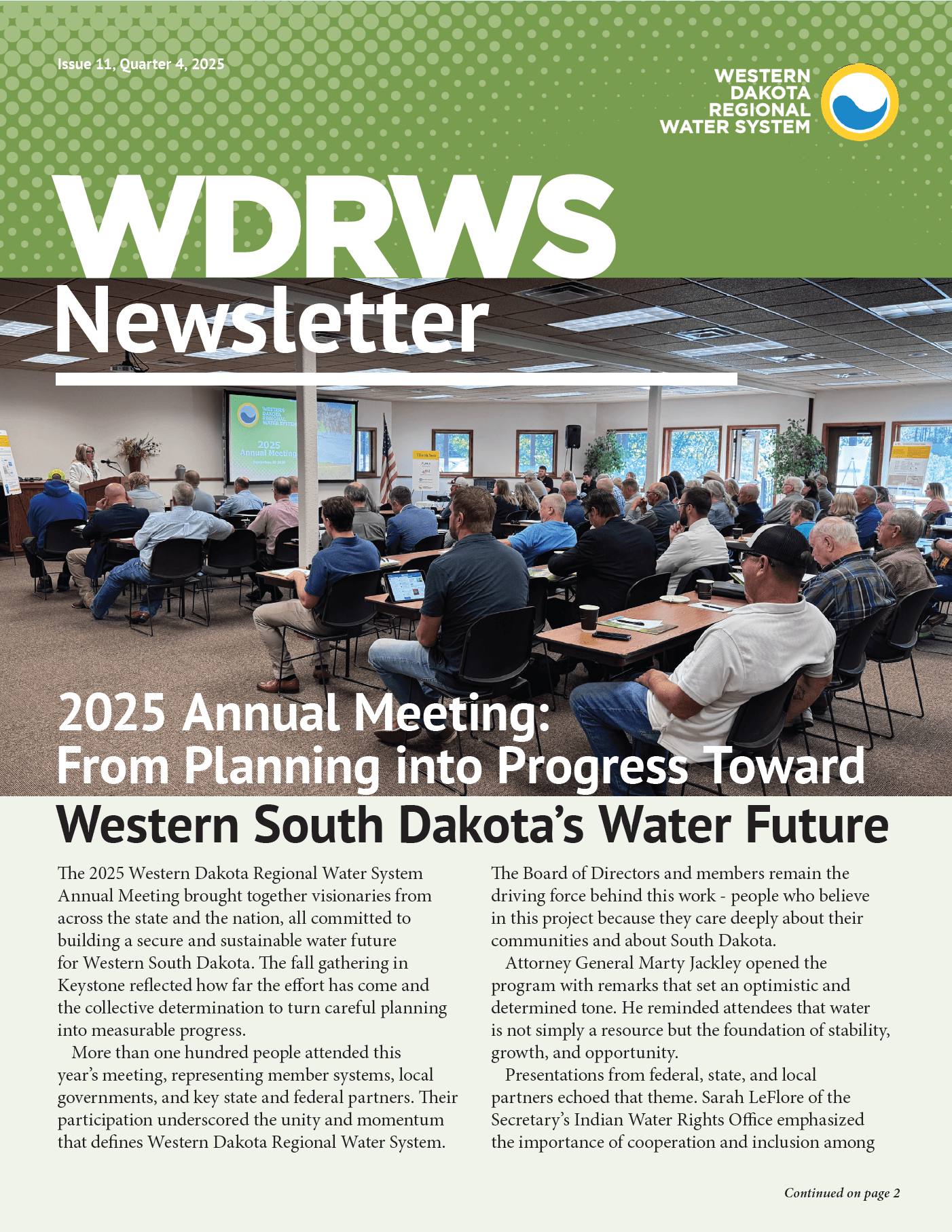 The 2025 Western Dakota Regional Water System Annual Meeting brought together visionaries from across the state and the nation, all committed to building a secure and sustainable water future for Western South Dakota.(cont.)